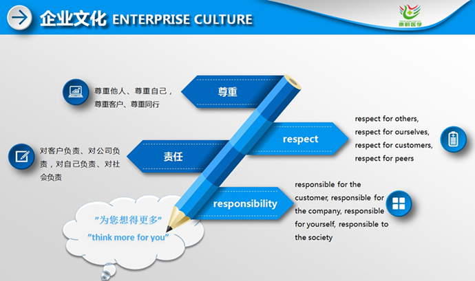 “成为模拟医学的铺路石”是康蔚医学企业的内在要求,康蔚医学选择了“尊重生命,关爱健康”,就选择了对生命和健康的负责任!秉着真诚、务实和向上的精神,为用户提供精益求精的品质服务,通过对社会、对人类负责任而实践我们的价值观。康蔚医学肩负着“帮助客户提高医疗救护技能,提升医疗服务质量,增进大众健康”的使命,意味着我们必须对模拟虚拟医学教育领域的高品质追求,这是康蔚医学的基础和内涵。只有保持对高品质的追求和实践,才能跟上行业的健康发展,提高人们的健康意识,提高医疗救护技能,才能无愧于社会,并成为优秀的企业公民。
