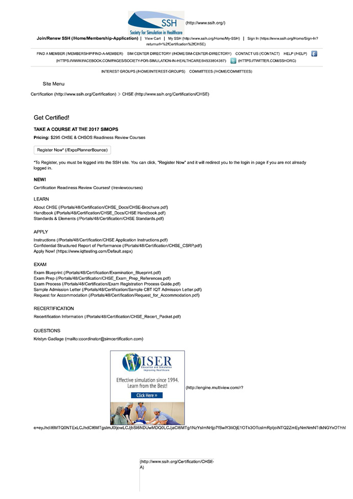 Thegoal of this course is to assist the learner in successfully obtaining Certified Healthcare Simulation Expert (CHSE) certification. The SSH EducationCommittee is providing this session in conjunction with the CertificationCommittee. (8759)