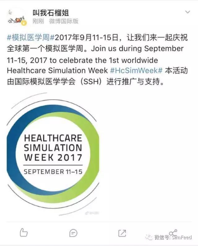 鉴于在中国,由于技术原因无法使用脸熟(Facebook)和推特(Twitter),本人在微博上建立了话题 #模拟医学周# 与 #HcSimWeek# 。欢迎大家使用相同的话题标签发表相关内容,把话题热度适当带上去哦!