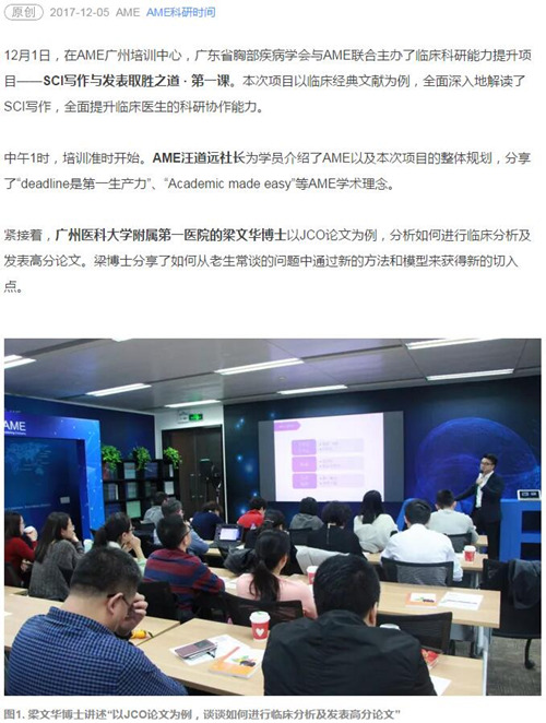 解读SCI写作,助力临床科研——AME临床科研能力提升项目第一课开讲