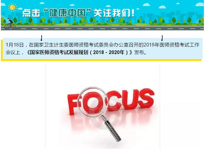 1月18日,在国家卫生计生委医师资格考试委员会办公室召开的2018年医师资格考试工作会议上,《国家医师资格考试发展规划(2018-2020年)》发布。
