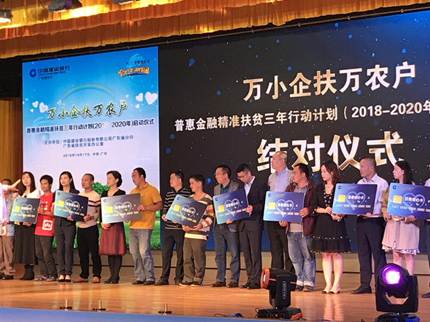 普惠金融精准扶贫三年行动计划(2018-2020年)启动仪式,广东省万小企扶万农户活动,我公司荣幸评为爱心企业。尊重和责任!感恩和感谢!
