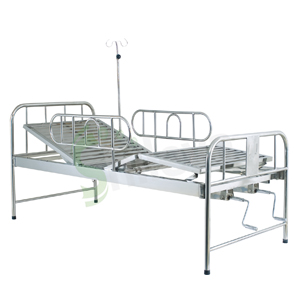 规格:2020*900*500mm 材质:全不锈钢(背部上升0~75°;腿部上升0~40°;) 一体冲压成型部件 摇杆系统2套 引流挂钩每侧1个 点滴架插孔每侧2个 输液架1支 选配:伸缩蚊帐架, 杂物架1个,护栏1对