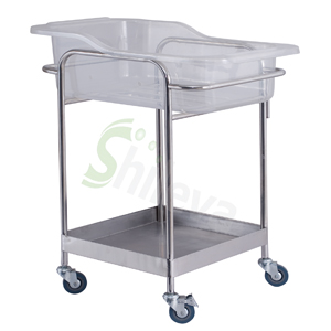 规格:680*380*760mm(L*W*H) 材质:全不锈钢、亚克力婴儿盆、3寸脚轮 可选配:抗菌皮革垫