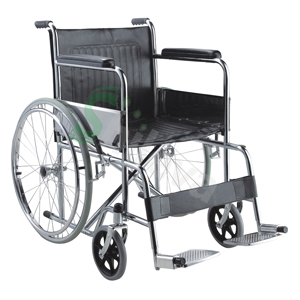 描述:固定扶手,固定搁脚,带双刹车,车架镀铬,软座,8“前轮, 24”后轮