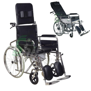 描述:可卸扶手,可降可卸式搁脚,高靠背可后倾至水平(全躺),车架镀铬,座便式坐垫,可卸下,8“前轮,24”后轮