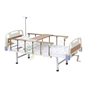 规格:2120*970*485mm(L*W*H) 手动单摇(背部上升0~75°) 钢塑板面 铝合金护栏 保护螺杆 防滑防潮脚套 ABS床头尾板 床面采用进口冷轧钢板一次 冲压成型,超声波除锈,表面静电粉末喷塑, 抗击耐腐蚀,不褪色 可选配:豪华脚轮 餐桌板